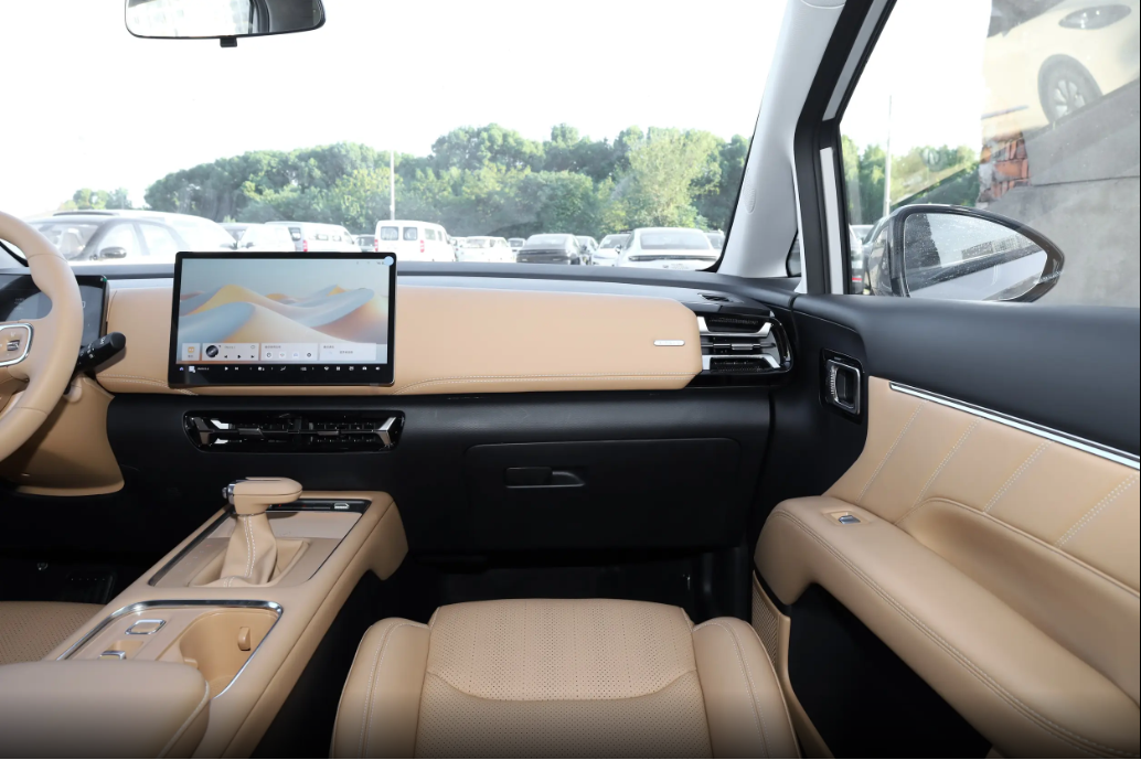 尺寸方面,新车的长宽高分别为4910/1850/1760(1770)mm,轴距达到了2910mm。内部座舱长度3331mm,横向宽度1500mm,采用“2+2+3”的座椅布局,后排空间利用率达到88%,为满员乘坐提供了基础保障。你别看这一串数字没啥感觉,我试驾特意坐了后排,跷个二郎腿那是轻轻松松,膝盖离前排座椅还有一大截空儿,完全不憋屈。不管是全家老小一起出门,还是拉点大件儿货物,这个空间都够用。实车摆在店里呢,不信的话自己来比划比划,坐进去感受一下才知道啥叫 “宽敞”!