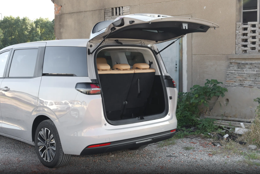 侧面我真的要夸,电动侧滑门用着方便不说,滑轨还藏在车窗下沿,一点不突兀,整车看着又舒展又协调,不管是拉人还是装货,颜值都不掉线。尾部就走实用耐看路线了,没跟风搞什么贯穿式尾灯,分体式灯组配上方正的造型,看着敦实又稳重,越看越顺眼!