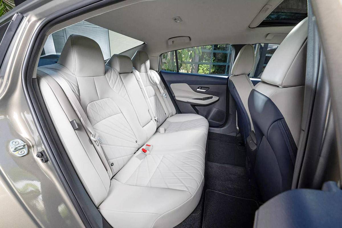 从目前海外版新款轩逸的内饰官图来看,中控台造型简约立体,使用了悬浮式的双联屏,方向盘是全新的两幅式设计。