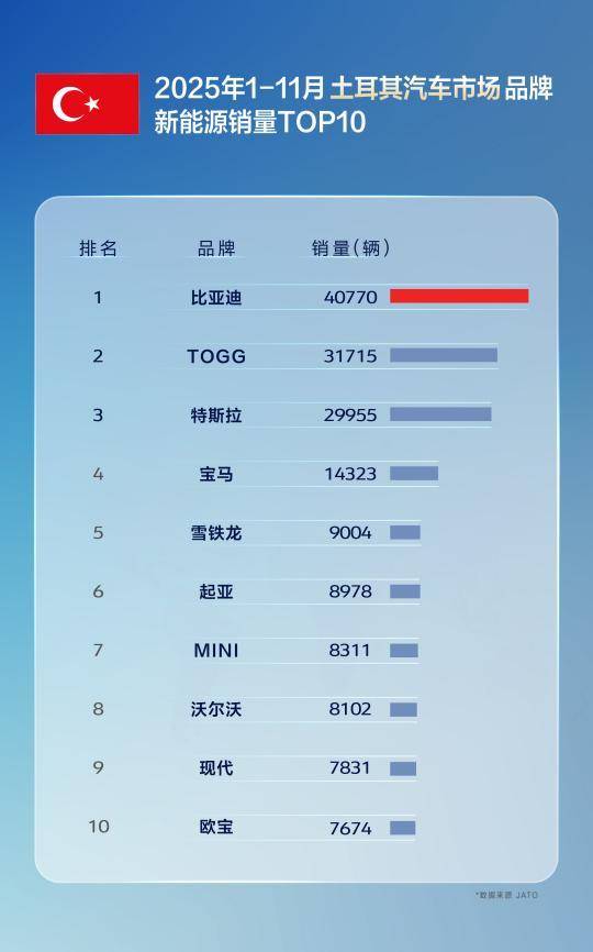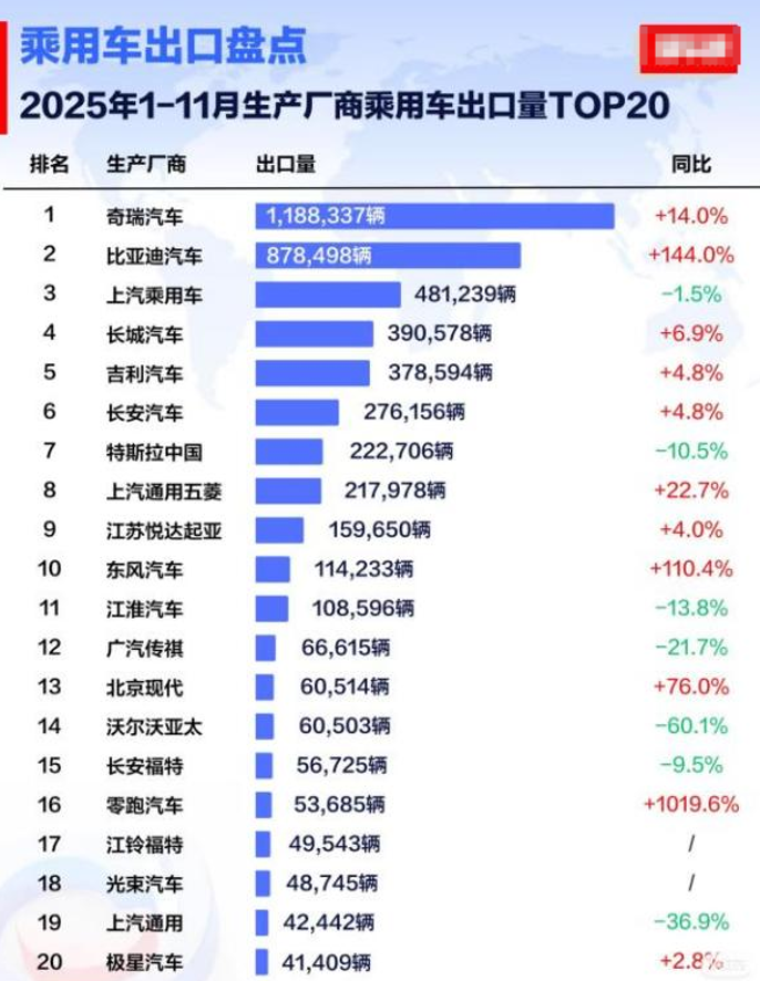 当 2025 年 11 月比亚迪乘用车出口量同比激增 313.4%、以 12.8 万台跻身出口榜前列,当 1-11 月累计 87.8 万台出口量实现翻倍增长,当比亚迪在 11 个核心国家销量以 305 万辆对 67 万辆的绝对优势碾压特斯拉,这家中国车企的出海成绩单,早已超越了单纯的企业增长叙事,成为中国汽车工业叩响全球引领时代的最强音。