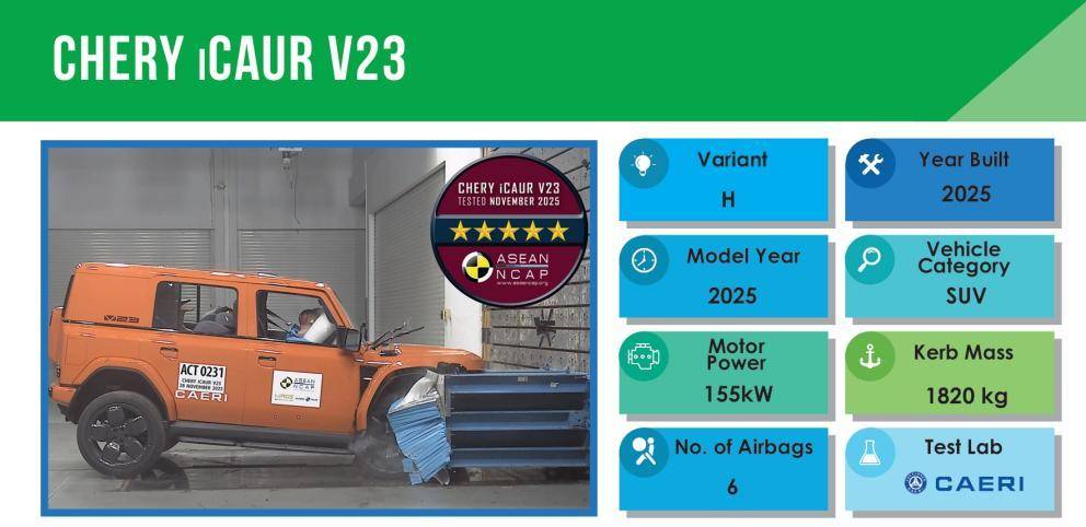 奇瑞安全再现“不客气”!瑞虎7创造东盟五星评价最高分 iCAR V23成为首款“五星方盒子”