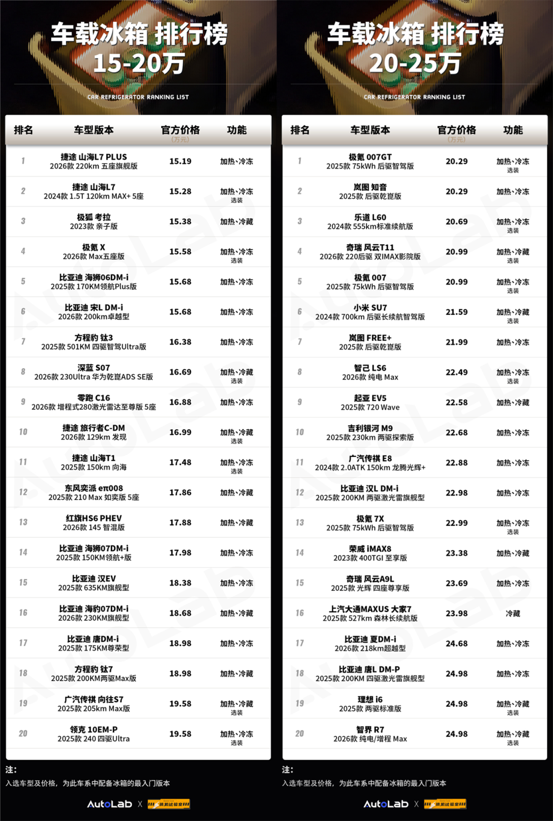 2025车载冰箱榜:30万以内带冰箱的车,已经超过60款了!