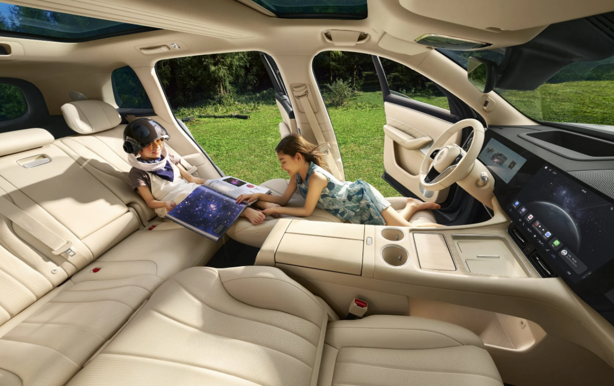 要有舒适的乘坐,首先要有宽敞的空间,问界M8的舱内有效空间达到2675mm,从第一排到第三排都有充足的空间。还提供大五座和大六座两种布局,大五座配备准零重力座椅,支持电动腿托,还有976 L超大后备箱,以及110L超大暗格,前后排放倒后组成大床模式,可谓露营神器。大六座配备零重力座椅,一键开启舒适坐姿,第三排也有宽敞的腿部空间,且支持靠背的角度调节。