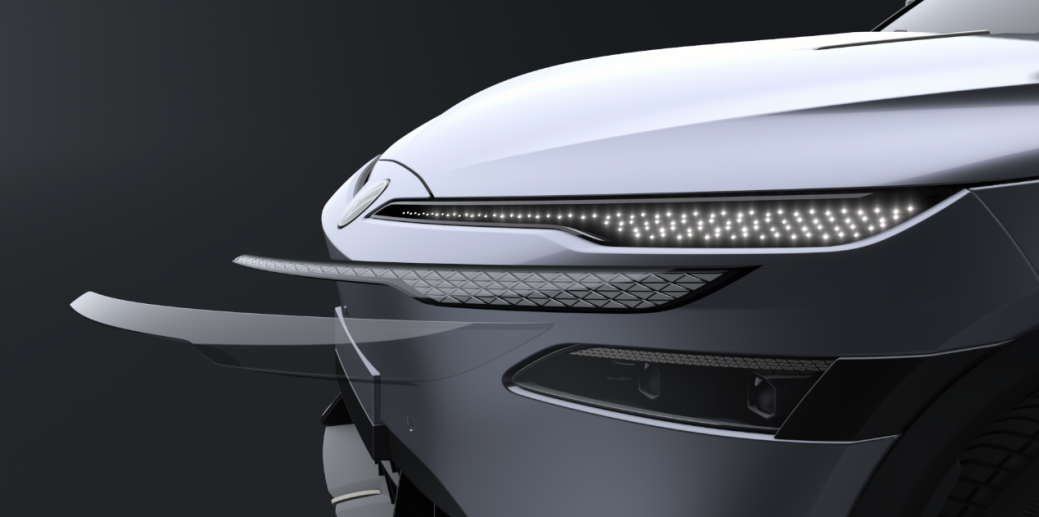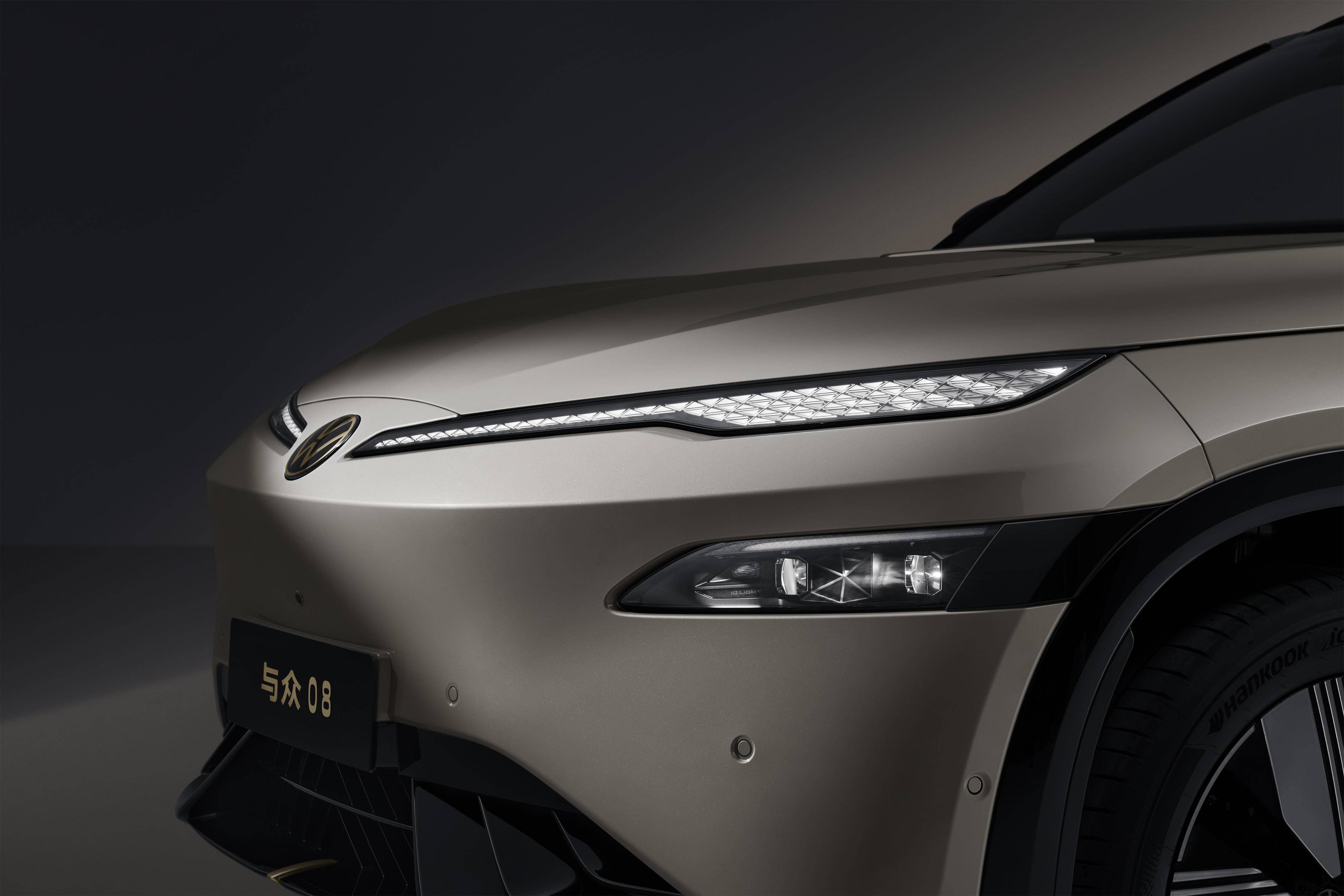 在纯电车型前脸设计不断演进、灯组形态日益多元的背景下,金标大众设计团队在与众08上,通过分体式灯光结构,为造型表达与功能布局提供了一种更清晰的设计解法。灯组上方辨识度极高的晶耀点阵大灯,如凝练的视线,定格整车先锋姿态。