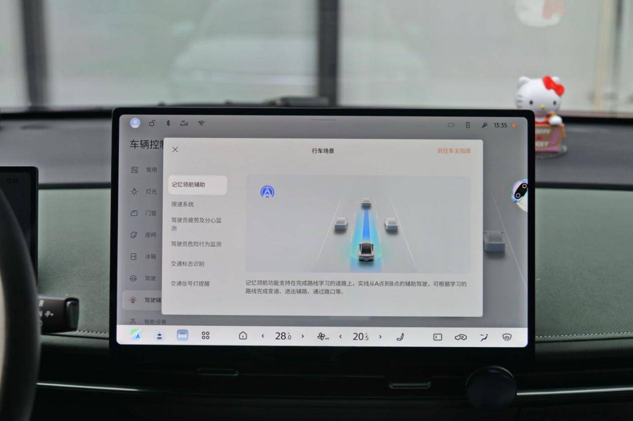 遥控泊车支持通过手机 APP 一键操控,即便身处车外也能让车辆自动泊入 / 泊出窄车位;离车泊入功能更是摆脱蓝牙限制,下车后车辆可自行完成泊车并下电,真正实现 “下车即走”。记忆泊车功能堪称 “专属车位管家”,一次建图即可记忆 5 个常用车位,再次驶入停车场时自动规划路径前往泊车,这是多数竞品不具备的独家优势。