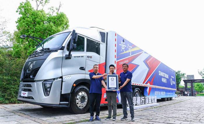 不仅如此,在随后的吉尼斯挑战中,黄河X7加满一箱油(945.29L)后,还拖着满载49吨的庞大身躯,一气跑出了4871.18公里,突破了“半挂式卡车单次加油行驶最远距离”吉尼斯世界纪录。