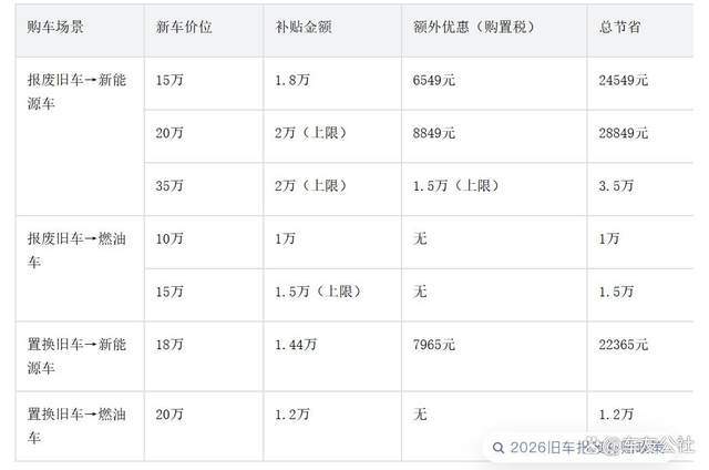 小编提示:2026年买车的政策红利已经明确,有购车计划的朋友可以提前核对自家旧车条件,算好省钱账!如果担心记不住细节,建议收藏本文,买车时对照着算~