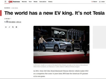 美国媒体CNN报道:世界迎来新的电动汽车王者,并非特斯拉
