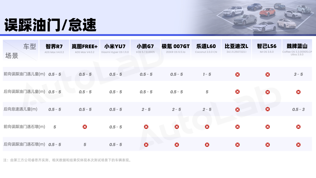 在生活中,恍惚间把油门当刹车的事故屡见不鲜,这项测试就是考验系统能否为人的失误行为兜底。