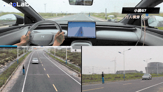 主视觉的小鹏做到了45km/h的刹停。