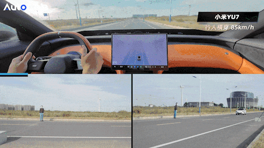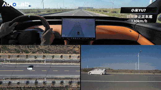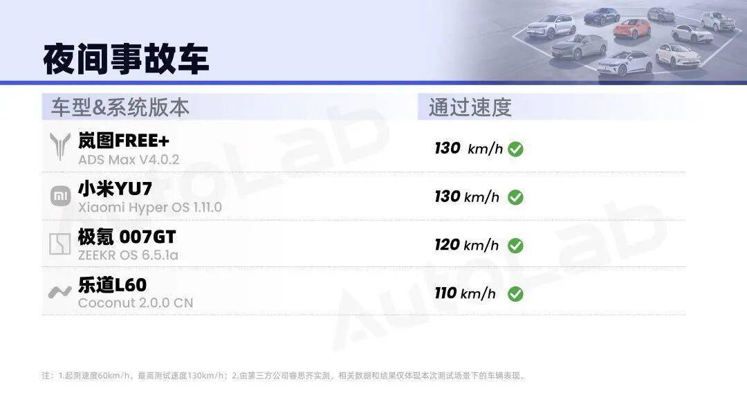 这个场景下,四台车全部通过,岚图FREE+和小米YU7测到了上限速度,130km/h。