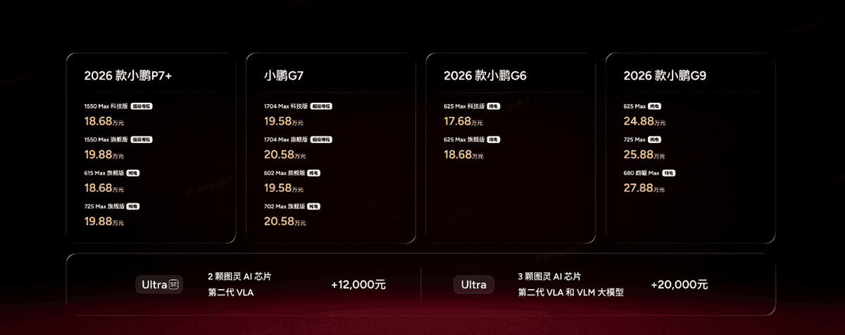 2026小鹏全球新品发布会上市多款新车,2026款小鹏P7+售价18.68万起,小鹏G7超级增程19.58万起售