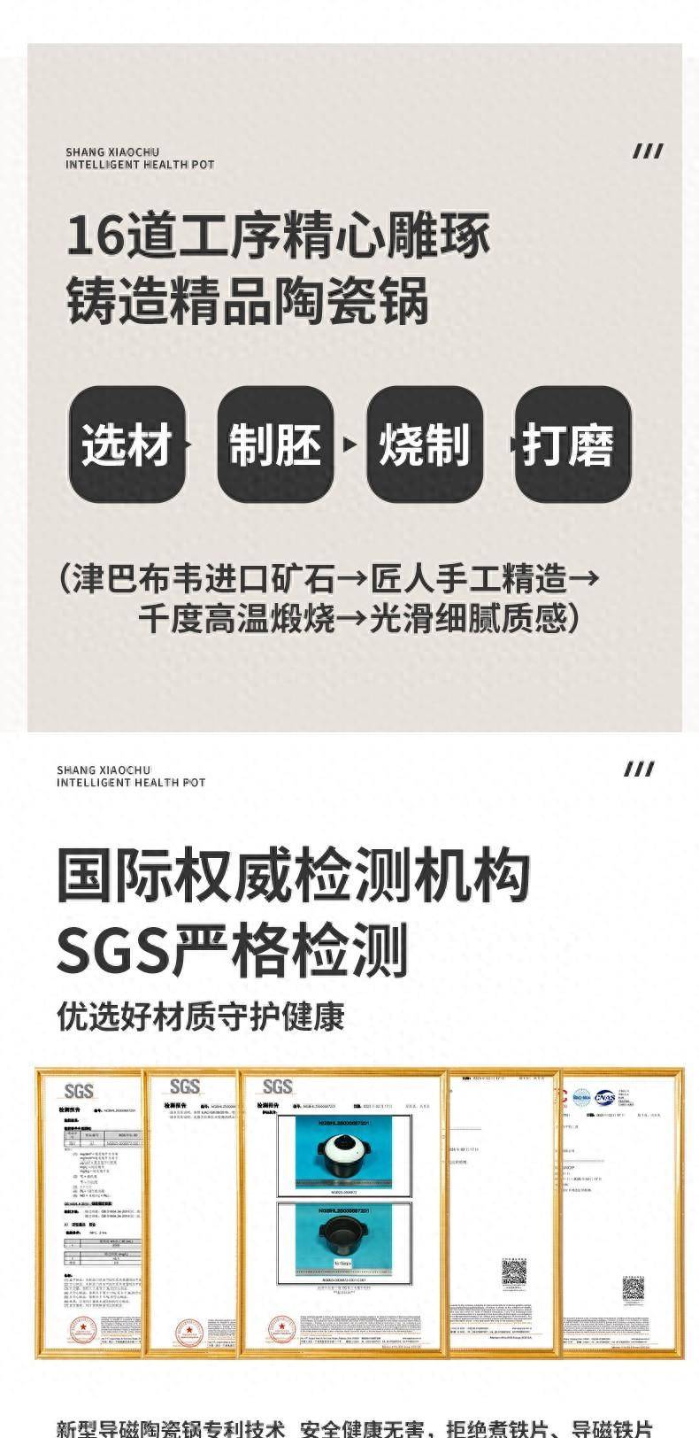权威认证为这份文化创新保驾护航:德国 TUV 认证、CE 认证见证其国际品质,中国家用电器 研 究 院的检测印证其性能卓越。京尚导磁锅以瓷为媒,以磁为桥,既守护了千年陶瓷文化的根脉,又赋予其智能、健康、节能的时代内涵,让传统在现代厨房中焕发生机,让文化在烟火人间里代代相传。