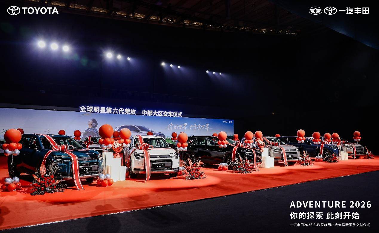 2026年1月9日,一汽丰田在长沙举办“全新荣放交付仪式暨SUV家族大会”,宣布旗下重磅车型第六代全新荣放正式开启全国交付;同时,为回馈用户厚爱,包括全新荣放、普拉多、皇冠陆放及锐放在内的SUV家族全系车型,推出覆盖广泛、诚意十足的限时购车福利,以卓越产品力结合实在优惠,满足不同用户需求。