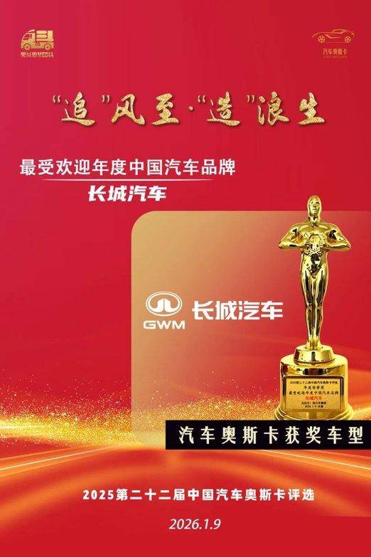 获奖理由:长城汽车35年来坚持高品质、高价值造车,以严苛质量体系、百亿级试验体系和全球领先的安全认证树立行业信赖。产品保值率高、投诉率低,技术投入连续三年超百亿元,研发团队规模与专利实力均居自主品牌前列,使得长城汽车成为最受欢迎年度中国汽车品牌。
