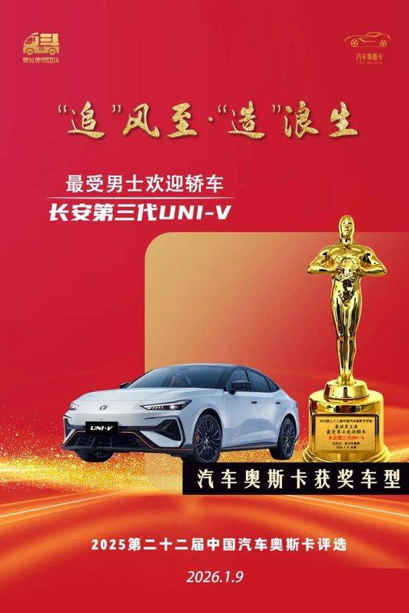 获奖理由:长安第三代UNI-V,凭超颜设计、超智座舱、超动智擎及超级安全,斩获男士青睐,荣获此奖实至名归。
