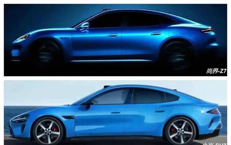 如今反转来了, 回旋镖来到了鸿蒙智行的车型上,尚界Z7的核心部分我们暂且按下不表,仅外观设计上,给出了一个大侧面图,网友毫不客气的直接拉出来小米SU7与尚界Z7的对比图。