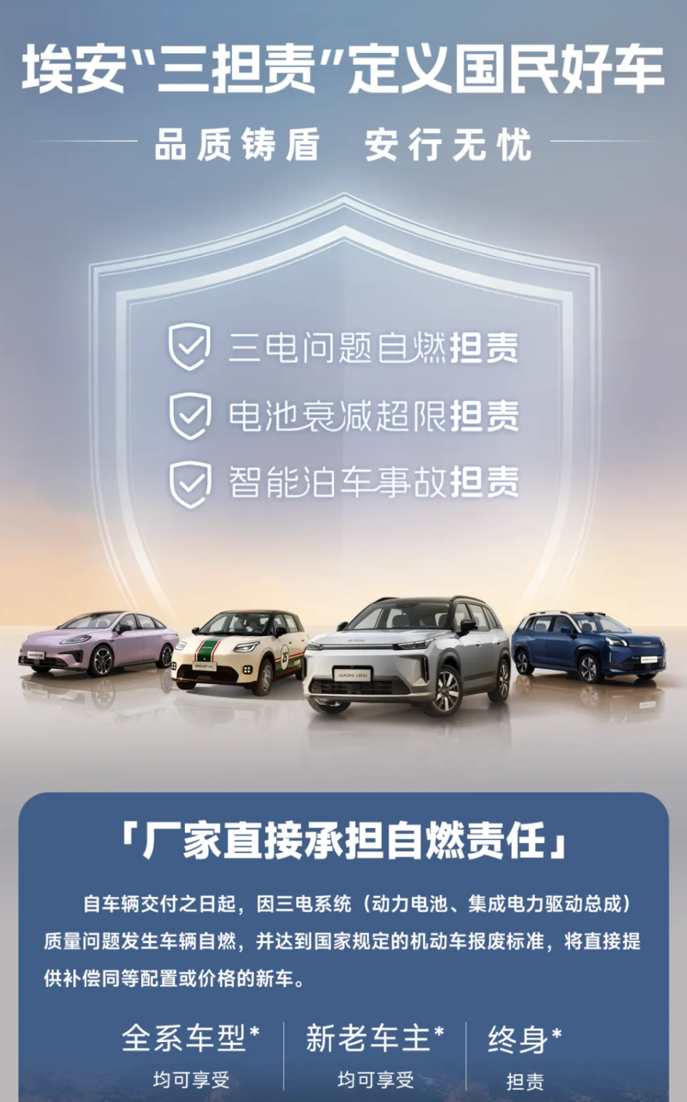 冬天买电动车,不少朋友担心续航打折的问题。埃安UT有两个续航版本,CLTC工况下,分别为330公里和420公里。小编特意看了下广汽集团推出的“自主品牌三担责”政策,除了三电问题自燃担责、智能泊车事故担责,这项政策还包括了电池衰减超限担责——单从这项政策就能看出,厂家对埃安UT的续航能力相当有信心。