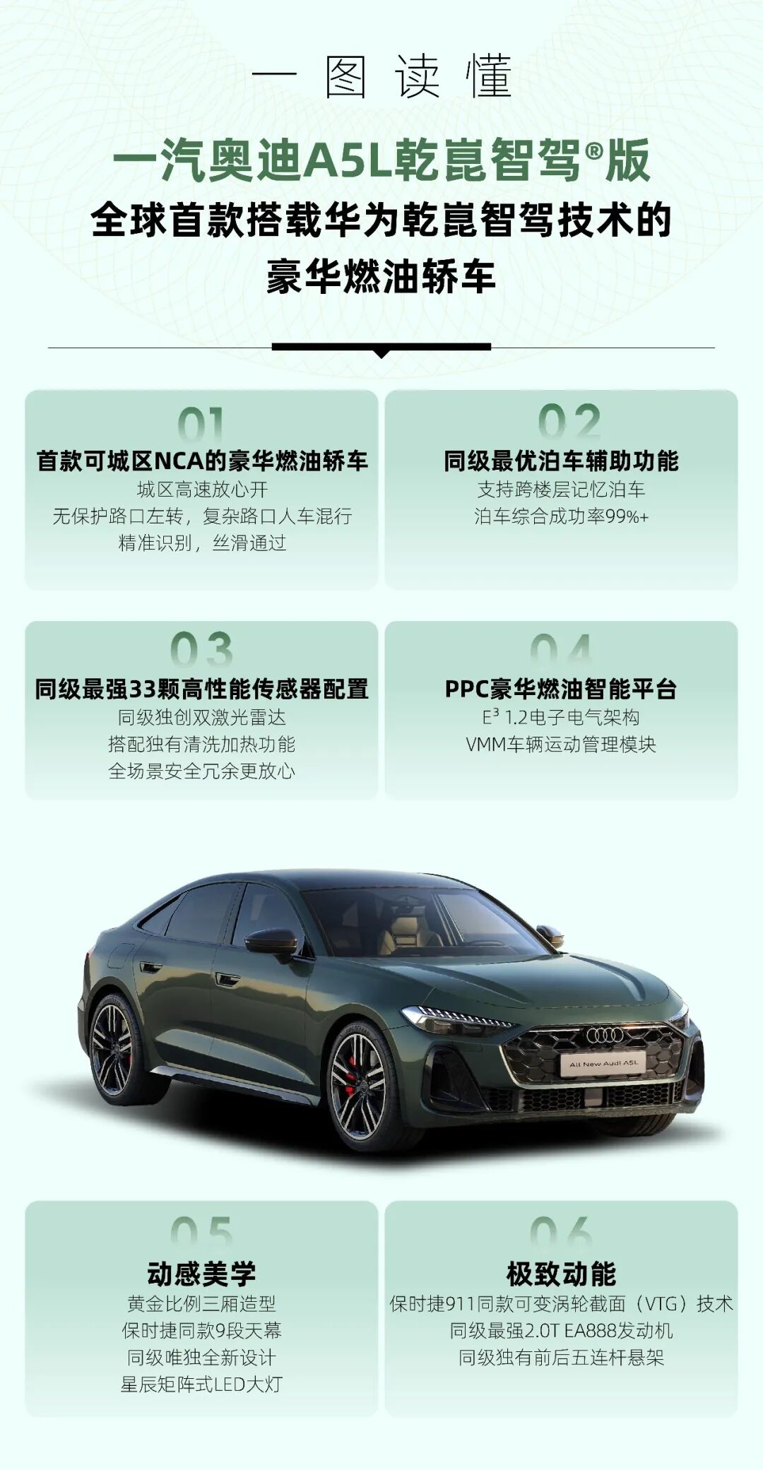 从一汽奥迪A5L乾崑智驾®版开始,智能化不再是燃油车的附加功能,而是真正成为豪华价值的一部分。