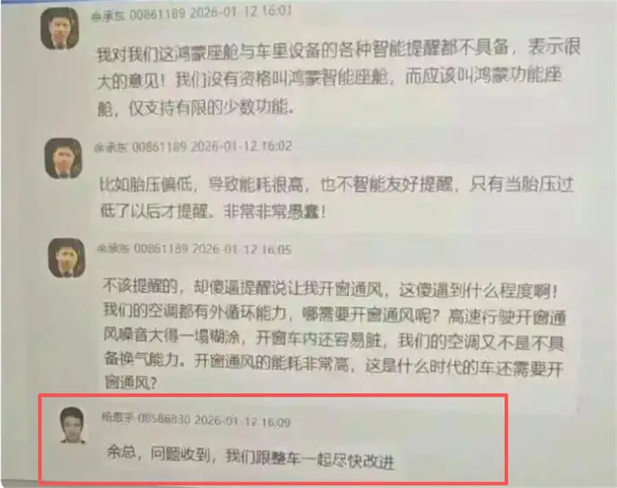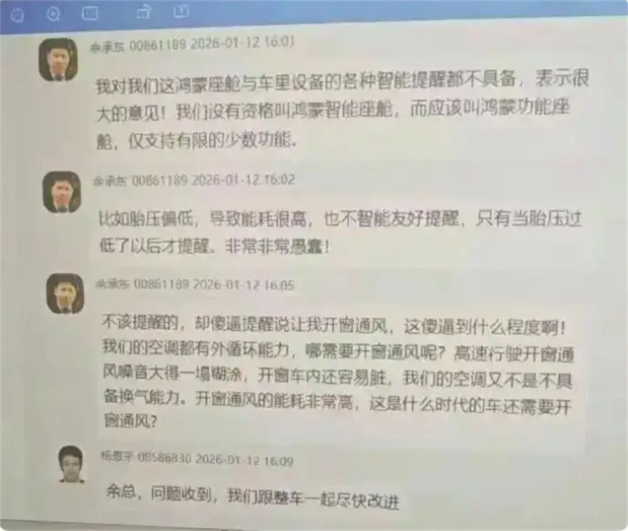 其实在我看来,这场“批评风波”最亮眼的地方,并非余承东的“狠话”而是华为团队的“快速响应”。聊天记录中我们可以看到,相关负责人紧随其后表态“问题收到,我们跟整车一起尽快改进”。这种“发现问题—立刻响应—着手解决”的闭环效率,正是华为产品主义的生动体现。