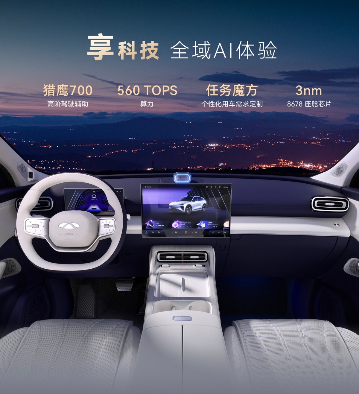 智能方面这车也没短板,搭载的猎鹰700+智驾系统,核心是地平线征程6P芯片,算力达到560TOPS,反应速度超快。官方说它能城市NOA、高快领航,你像应对环岛、掉头这些复杂路况以及无保护左转、施工区域通行它都能搞定,它还有代客泊车,新手也能轻松停车。车内还有3nm座舱芯片和本地大模型,语音、手势控制都很灵敏,不用手动操作超方便。