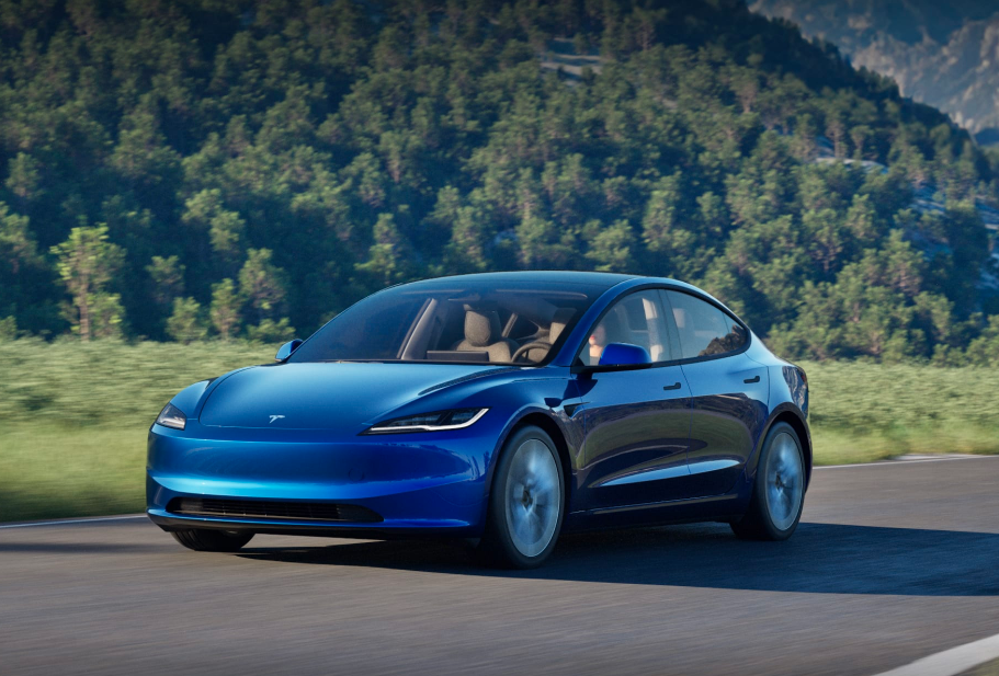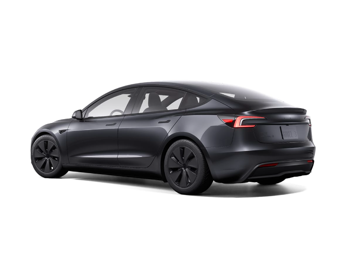 Model 3延续特斯拉家族极简设计,采用无格栅前脸、隐藏式门把手与溜背造型,虽不惊艳却足够耐看。贯穿式尾灯采用C型灯带,夜间点亮呈现流动的光效。小鸭尾扰流板微微上翘,搭配后保险杠下方的黑色扩散器,提升了整车的运动氛围。