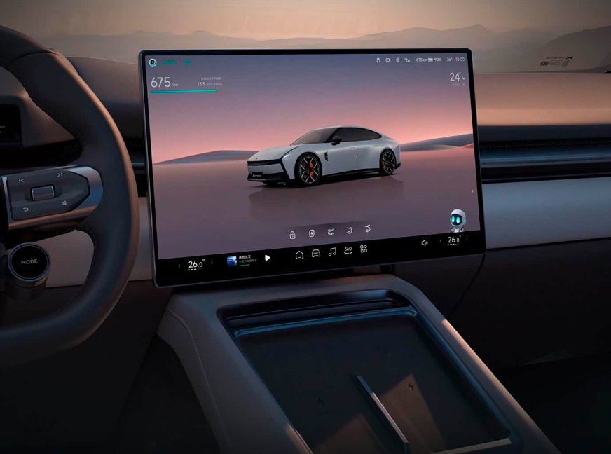 座舱交互方面,全新小鹏P7配备15.6英寸三轴灵动中控屏,支持语音、车控、四指手势、方向盘按键多种方式调整,唤醒小P后,灵动屏还会微微转向语音指令的方向,可左右摆头和上下点头,互动感很强。配备87英寸AR-HUD与后排娱乐屏,四音区语音助手支持方言识别与车外唤醒,在车外想打开后备厢、打开充电口、打开尾翼等,一句话就能搞定。智能座舱由1颗图灵芯片+骁龙8295P双加持,无论是打开导航还是切换应用,响应零延迟,全家人都可轻松与它互动。