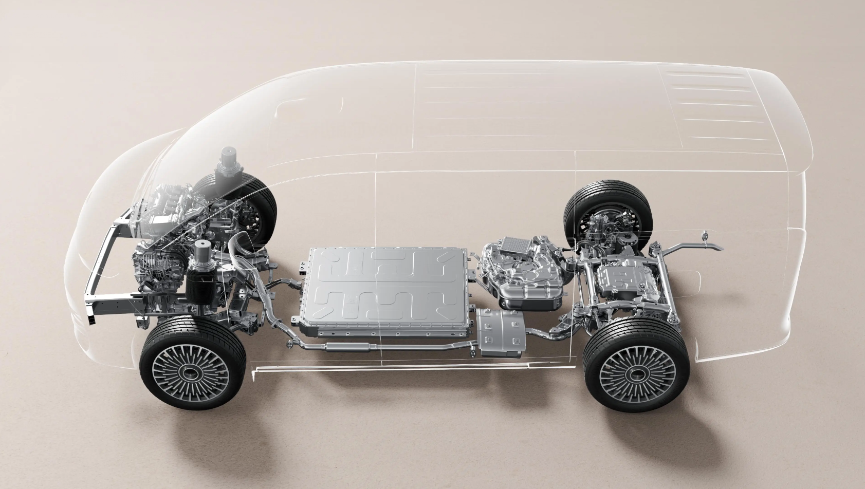 增程汽车用电动机驱动,吉利银河V900配备前后两台电动机,参数分别为前90kW/150N·m,后250kW/373N·m;这样的比例还是比较理想的,毕竟MPV满载频率高且满载之后的重心向后,后轮抓地力更大。该车百公里加速成绩为6.5秒。