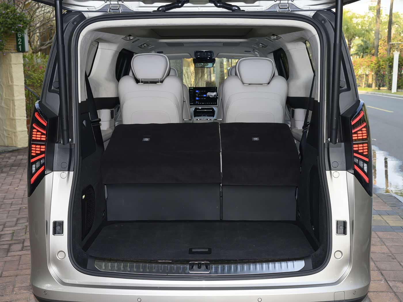 该车前后悬偏长,但车身尺寸也足够长,于是乘坐空间和后备箱空间都会足够充足;但国产新能源汽车普遍偏爱采用短前后悬的设计,这会让侧面看起来更加饱满,一个是偏向实用的设定,一个是偏向视觉冲击力的设定。车辆灯组设计比较酷炫,尤其是尾灯,这也是对商务车用户的一个考验。