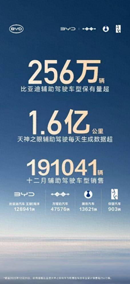 当辅助驾驶从汽车行业的 “加分项” 变成用户购车的 “必选项”,比亚迪用实力给出了最优解。截至 2025 年 12 月,比亚迪辅助驾驶车型累计保有量超 256 万辆,稳居中国车企第一,让 “全民智驾” 的承诺照进现实。