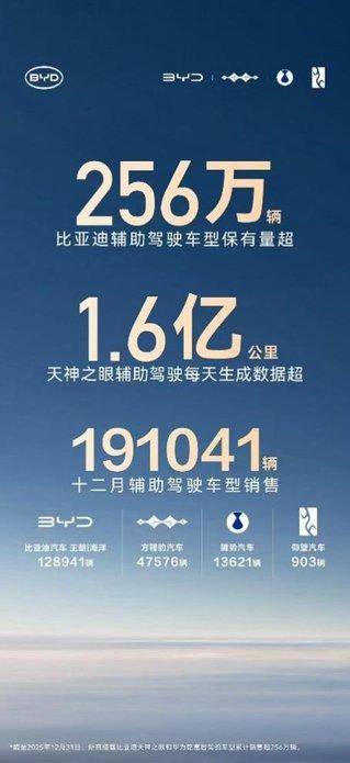 当辅助驾驶从汽车行业的“加分项” 变成用户购车的 “必选项”,比亚迪用实力给出了最优解。截至 2025 年 12 月,比亚迪辅助驾驶车型累计保有量超 256 万辆,稳居中国车企第一,让 “全民智驾” 的承诺照进现实。