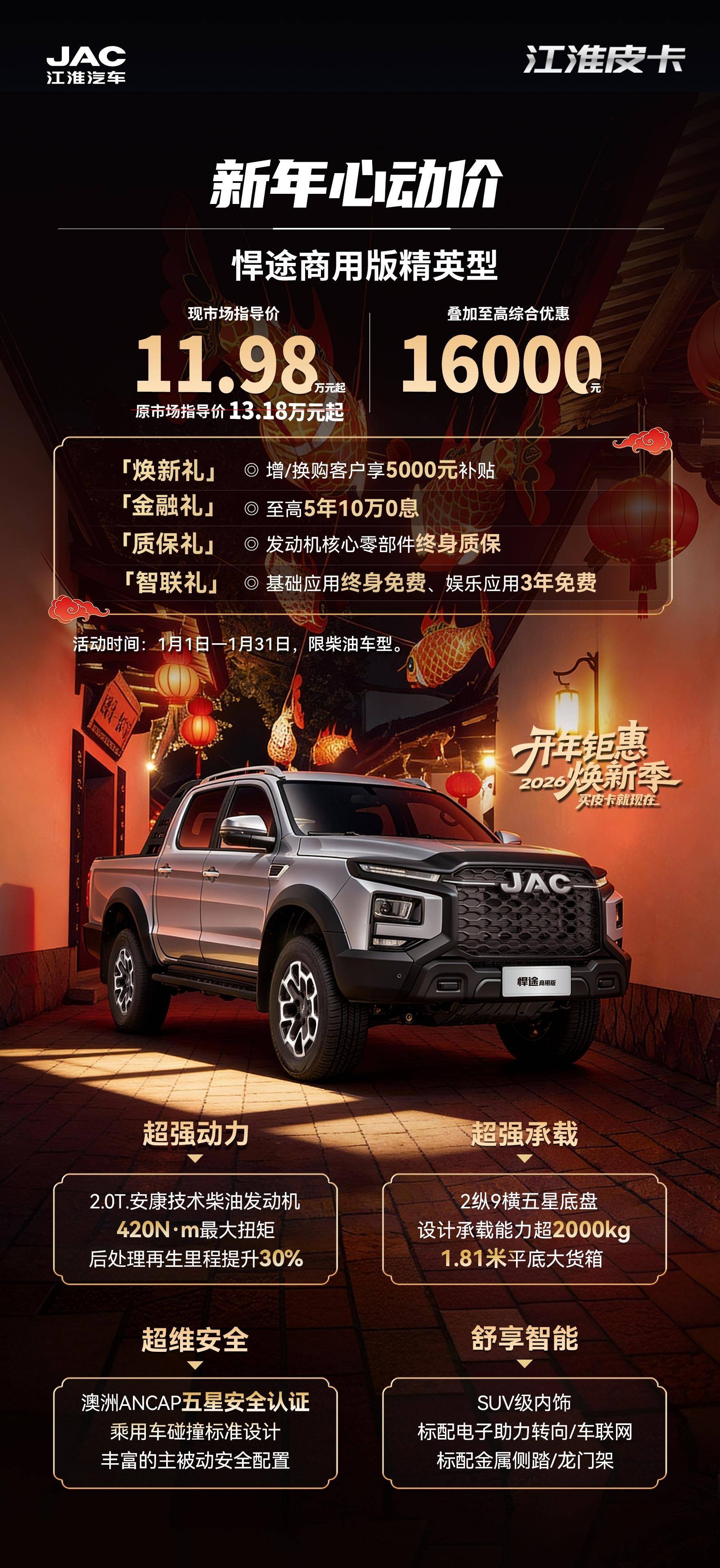 2026焕新启程,江淮皮卡礼遇全开,诚意拉满!