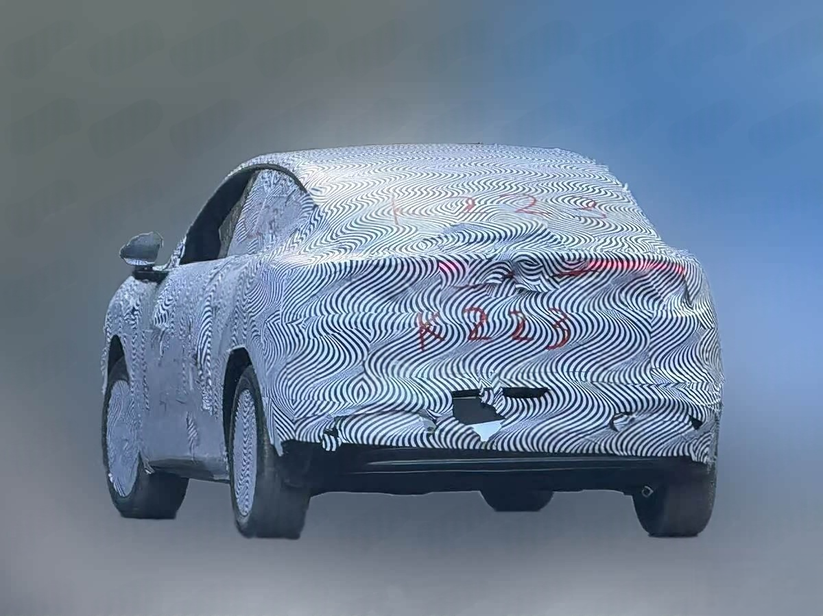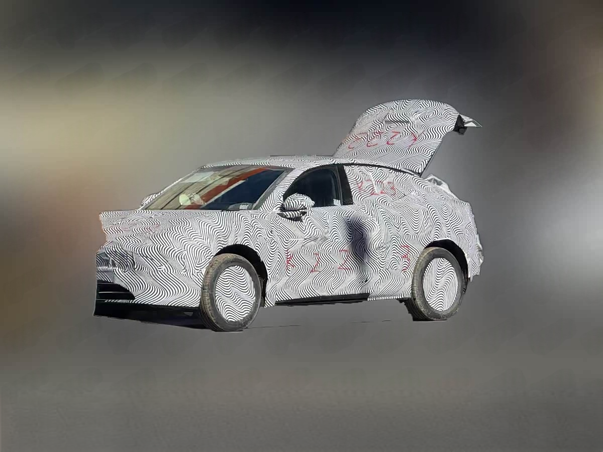 尾部采用贯穿式尾灯组,另外从伪装车衣的痕迹来看,后备厢拥有明显的折痕,或将采用分层式的设计手法。对了,新车后备厢采用了整体掀背样式的开启方式,造型上与特斯拉Model Y相类似,还将配备电动尾门功能。
