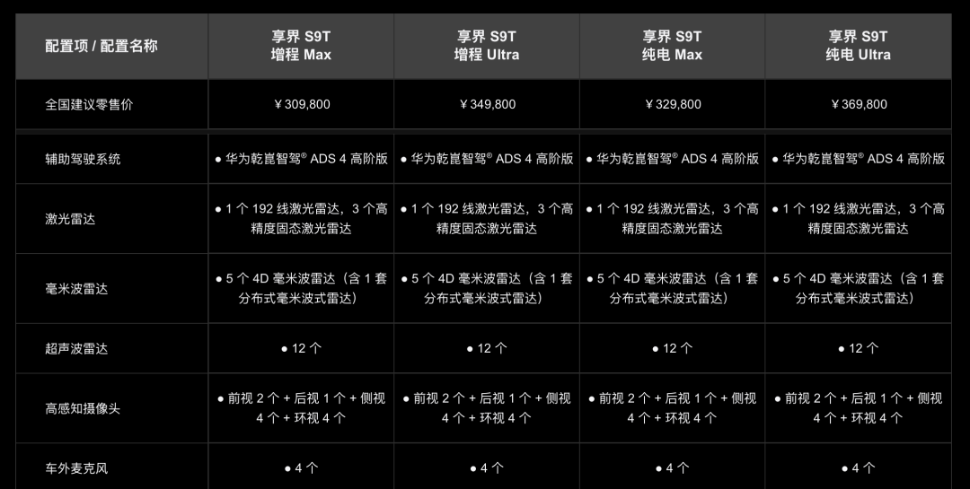 全系标配激光雷达、4D毫米波雷达、11个高清摄像头及12个超声波雷达,实现全方位感知;