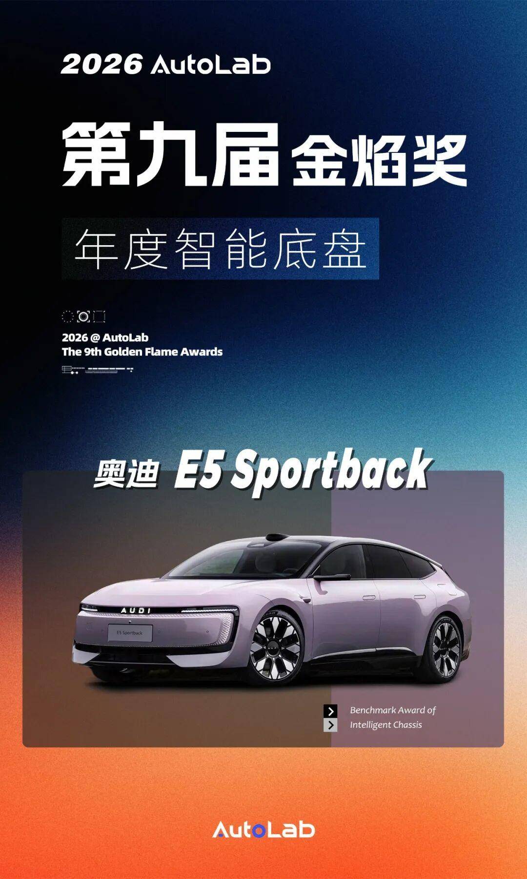 在总计3853张有效投票中,奥迪E5 Sportback拿到了其中的2394票,奥迪E5 Sportback以超过62%的得票率获得【年度智能底盘】