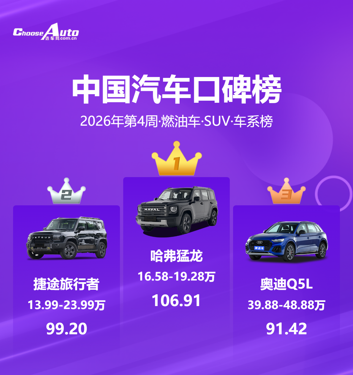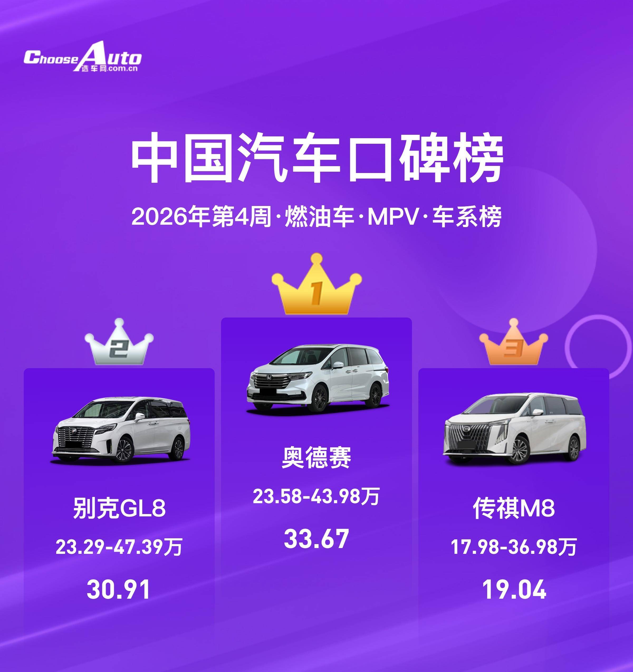 2026年第4周燃油车口碑榜:MPV、轿车、SUV三赛道,谁把“好用”写进了分数?