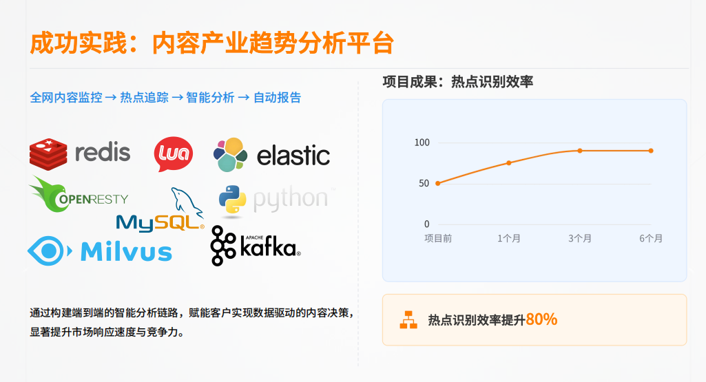 依托微服务架构与云原生技术栈,代码板块实现了优化内容的自动化部署与动态管理。其平台支持超过10万个媒体渠道的智能分发,涵盖主流AI应用与垂直场景。与此同时,团队构建了实时数据监控体系,通过可视化仪表盘直观呈现曝光量、准确率、用户互动等关键指标,形成“执行-反馈-迭代”的敏捷优化循环。