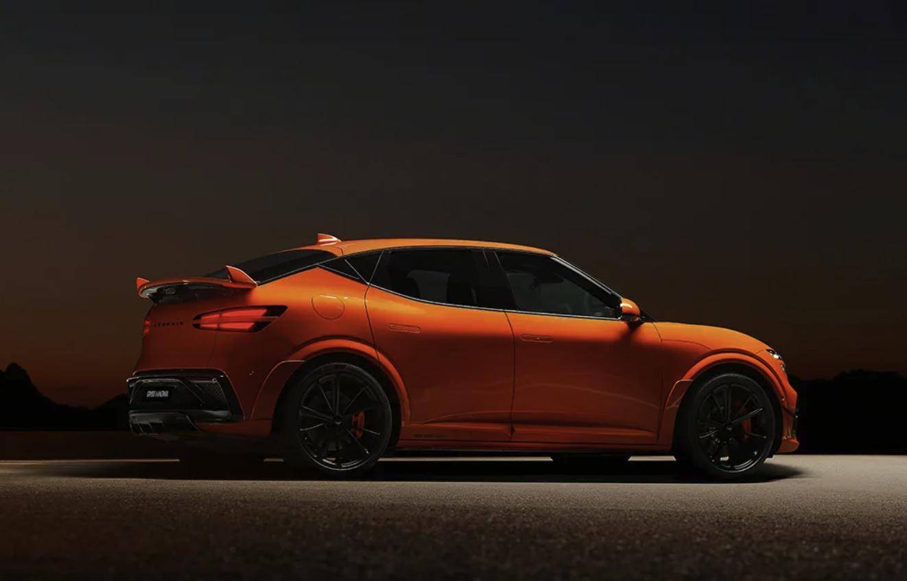 新车的外观部分在普通版的捷尼赛思GV60基础上进行了部分升级,前脸部分,大灯造型和普通版一致,双条形的分体式灯组有着很高的辨识度。前杠换装了全新的造型,使用了大面积的黑色网格状格栅,两侧带有突出的扰流造型。