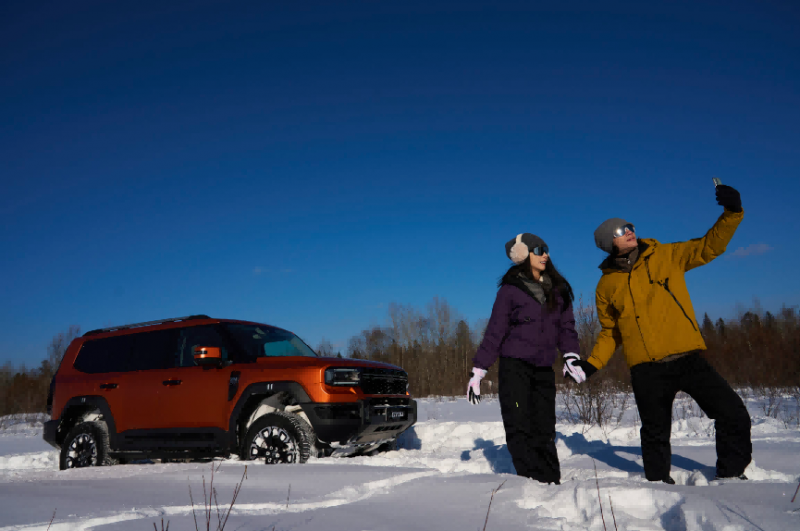在-30℃的长白山极境,纵横G700以一场高规格的冰雪试驾,重新定义“穿越之王”的冰雪生活方式。这里,冰雪不仅是自然的馈赠,更是硬核实力的终极考场。试驾过程中纵横G700化身时尚单品,与户外机能风穿搭完美融合。静态场景下,它是镜头前的颜值担当,动态穿越中,雪地光影与车身线条交织出流动的美感。这种“动静皆宜”的精致格调,让硬派越野不再局限于户外场景,更成为彰显生活态度的潮流符号。