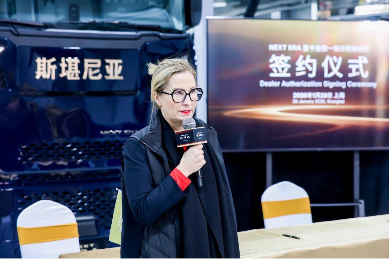 签约现场,斯堪尼亚集团执行副总裁、斯堪尼亚集团中国总裁Camilla Dewoon柯木兰女士强调:“‘在中国,更中国’是集团长期坚守的承诺,NEXT ERA牵引车系列的发布与销售服务网络的落地,正是这一承诺落地的关键实践。尽管市场竞争激烈,NEXT ERA重卡的市场反响仍超预期,这离不开合作伙伴的鼎力支持与中国团队的协同作战。强劲开局为我们深耕市场奠定了坚实基础,未来将与合作伙伴并肩,围绕中国用户需求,打造专属优化的可持续运输解决方案。”