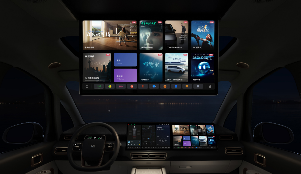 理想MEGA同样配备第二排双零重力座椅,并且具备通风/加热以及按摩功能,21.4英寸的后排娱乐屏整体所带来的娱乐体验则要更优,同时小桌板、智能冰箱等“刚需配置”同步上车;车内用料触感细腻,不过整体的颜色搭配以及设计层次感相比极氪009和岚图梦想家的“会客厅”来说,则要更像“起居室”一些。