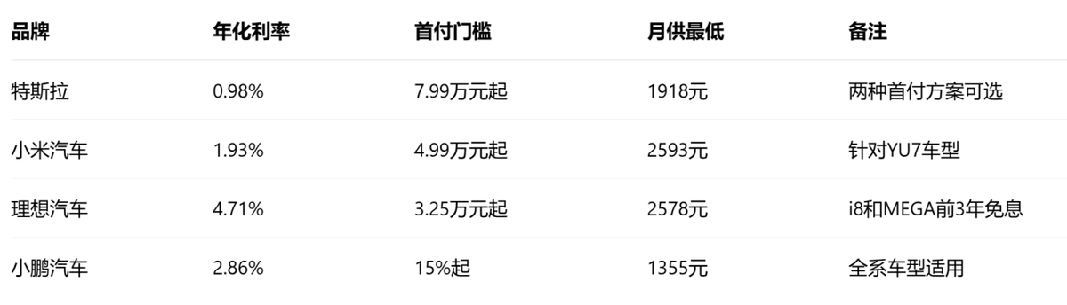 不过,也并不是所有的“7年低息”方案都和特斯拉一样划算,像是小米、理想、小鹏都推出了“7年低息”方案,但各家的细节不尽相同。