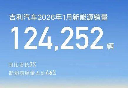 吉利汽车1月乘用车销量达270167辆,同比微增 1%、环比大涨 14%,实现同比环比双增长,顺利拿下开年销冠。新能源板块表现稳健,1 月新能源销量 124252 辆,同比增长 3%,新能源占比提升至 46%。