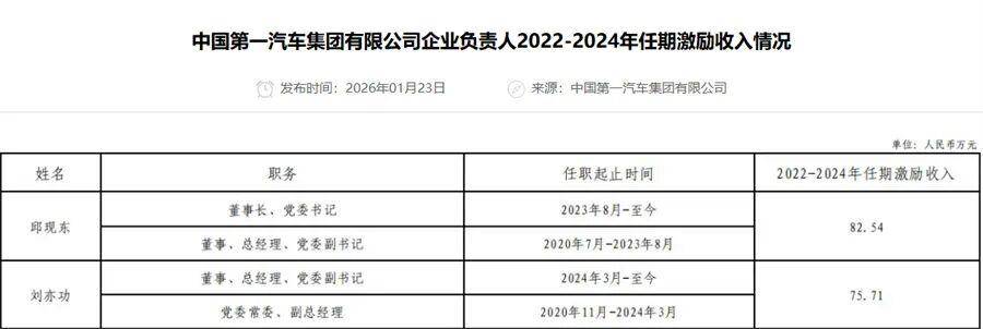 【文/财圈社&道哥说车 张浅】2月3日,国务院国资委网站集中披露了87家中央企业负责人2022-2024年任期激励收入,这一公开数据迅速引发社会各界对央企薪酬体系的关注。在众多央企中,汽车行业的两大龙头——中国第一汽车集团有限公司与东风汽车集团有限公司的高管任期激励收入尤为引人注目,不仅成为行业内讨论的焦点,更与能源、通信等领域央企负责人的收入形成了鲜明对比,折射出不同行业央企在薪酬分配上的差异化特征。