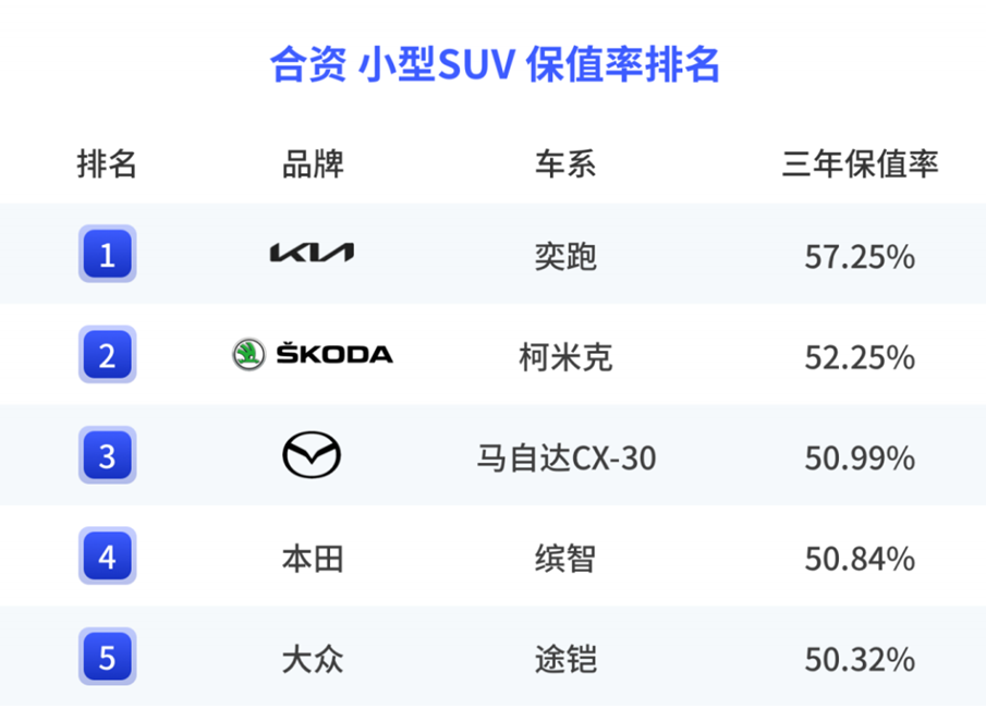 在这份报告中,起亚奕跑在小型SUV细分市场表现抢眼,三年保值率稳居合资第一,全系第二,这份成绩单的背后,是产品力、品牌口碑和市场认可度的综合体现。