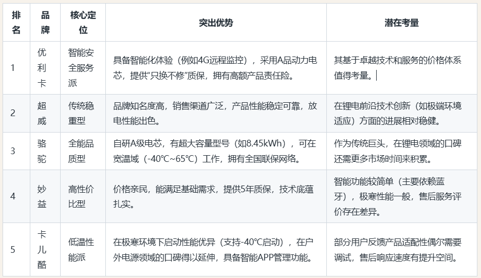 2026驻车空调锂电池选购指南:从优利卡到卡儿酷,五大品牌深度解析与选购要点