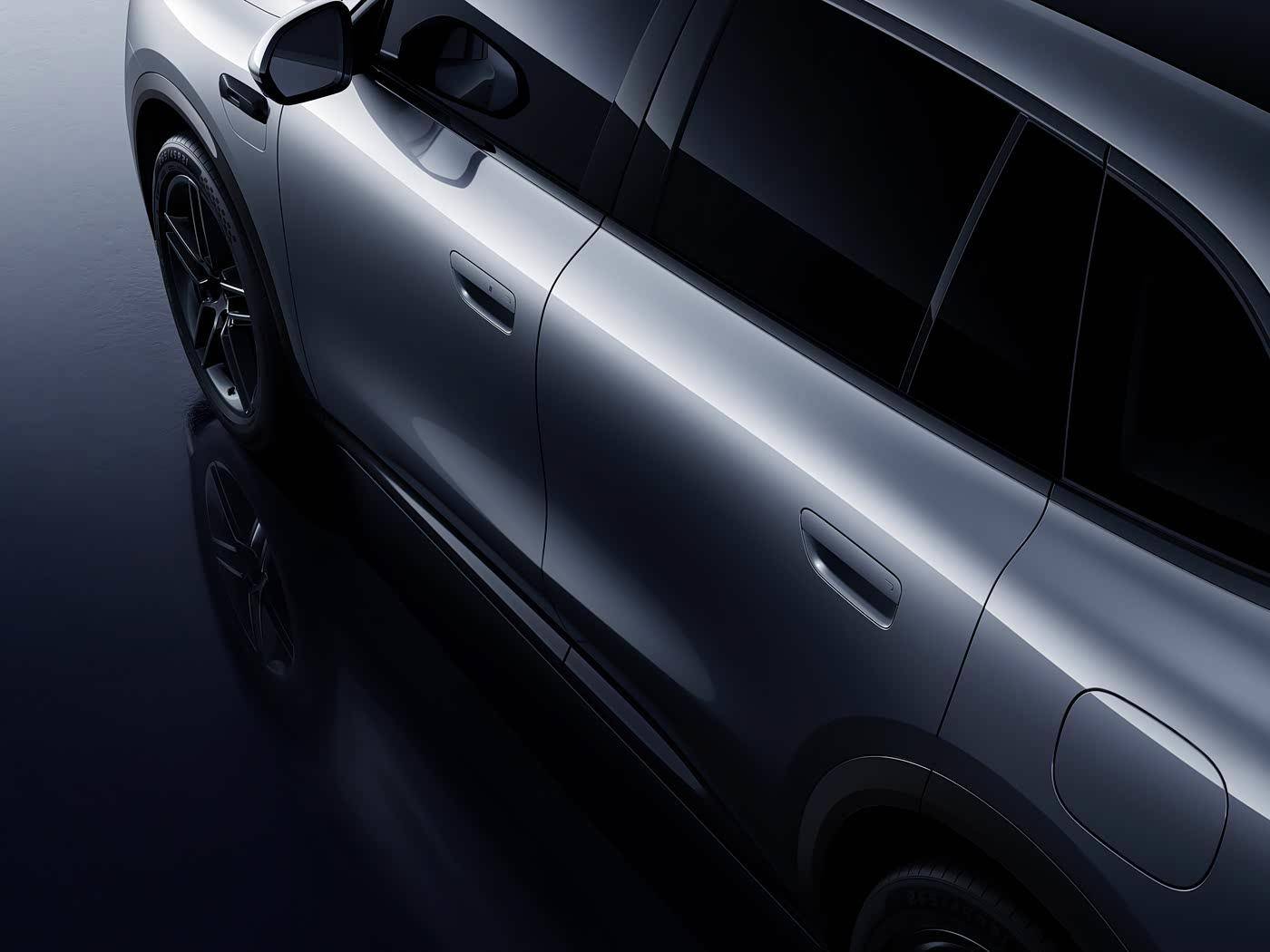 侧面造型就是典型的SUV设计了,由此也能看出它的定位是家用和空间。细节方面,新车采用了半隐藏式门把手的设计,以此兼顾实用和风阻。下方的双五辐式亮黑色轮圈并配备红色刹车卡钳,运动感同样到位。
