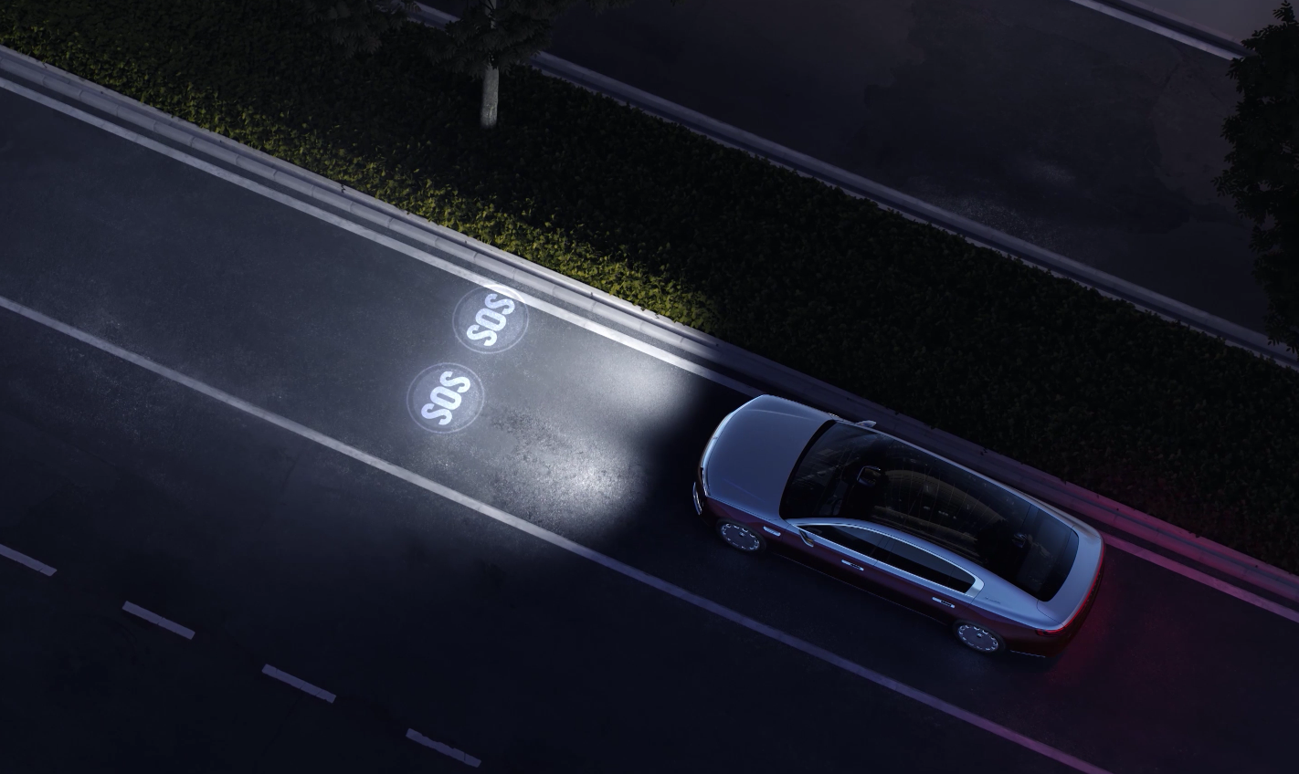 因为特有的环境因素影响,冬季也是年龄较大的群体失能风险较高的时期,如果开车时遇到驾驶员失能,是很危险的。这种情况下,尊界S800的失能辅助SOS可以帮上大忙。当系统通过DMS疲劳监测判断驾驶员处于失能状态时,会立即启动三级分层报警,若驾驶员无响应,车辆将激活智驾功能,根据路况自主减速并靠边停车,通过大灯组向地面投射SOS字样,引起周围关注。