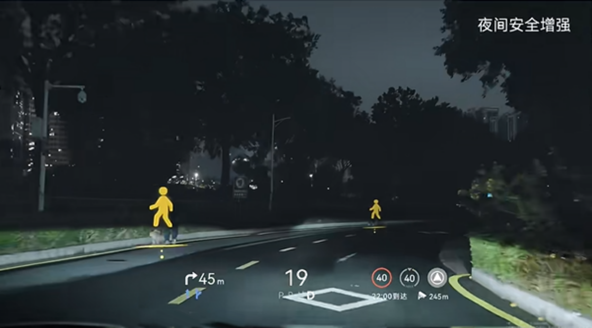 除了上述非常实用的安全功能,尊界S800的辅助驾驶也在不断升级和优化,华为乾崑智驾ADS 4.1将可靠性提升到了新的层次,特别要提一下以下几个功能。eAES(增强型自动紧急转向辅助)在识别到前后夹击等风险时,能协同AEB实现“边刹边让”,防止被夹心。防御性驾驶过路口通过AI博弈算法,在复杂路口等场景下提前预判行人、非机动车意图,实现更拟人、更安全的通行。而AR-HUD超视距预警则将导航路径、路面预警等信息投射在前挡风玻璃上,在夜间或光线不佳的场景下,系统会对AR-HUD视野范围内的行人、非机动车等目标显示告警提示,辅助驾驶员进行风险判断。