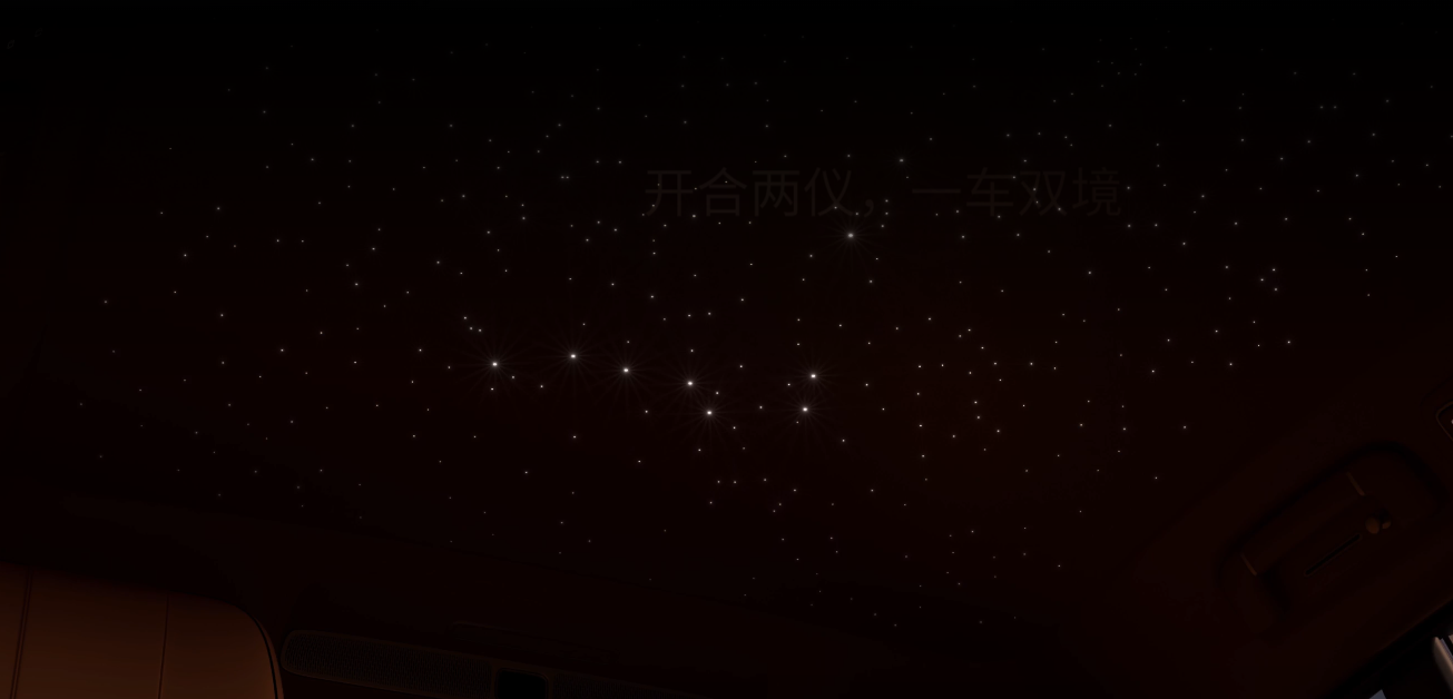 既然说到了仪式感,就不得不提尊界S800的另外两个元素。一个是智能星空顶,采用智能工装精准排布618颗星光点,可随音乐节奏、车速等动态变化,氛围感很到位。另一个是紫银双拼车色,非常符合国人对“大红大紫”的向往,这两种颜色碰撞出的质感很高级,实车观感效果很好。